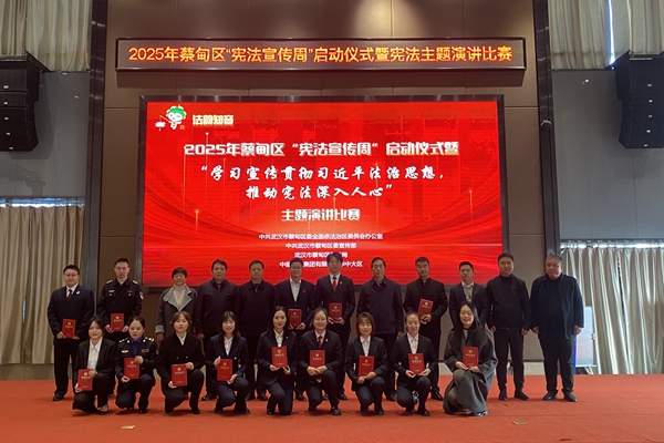 12月3日上午,2025年蔡甸区“宪法宣传周”启动仪式暨宪法主题演讲比赛在中建科工办公区长江厅隆重举行。