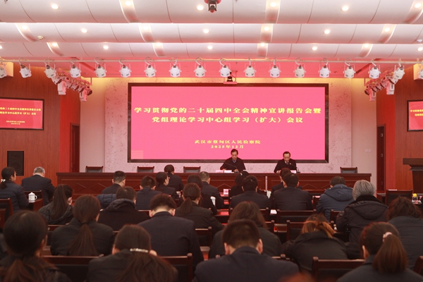 为深入学习贯彻党的二十届四中全会精神,切实把全体检察人员的思想和行动统一到全会决策部署上来,近日,蔡甸区检察院组织召开党的二十届四中全会精神宣讲报告会暨党组理论学习中心组学习(扩大)会议。会议由党组书记、代理检察长徐江主持,全体检察人员参加会议。