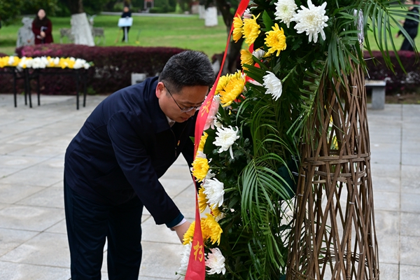 本网讯(通讯员 蔡宣)苍松翠柏凝思,清明细雨寄情。4月3日上午,蔡甸区玉笋山英烈广场庄严肃穆,清明节联合祭扫烈士活动在此隆重举行。蔡甸区检察院受邀组织干警代表参加活动,追思革命先辈,传承红色精神。