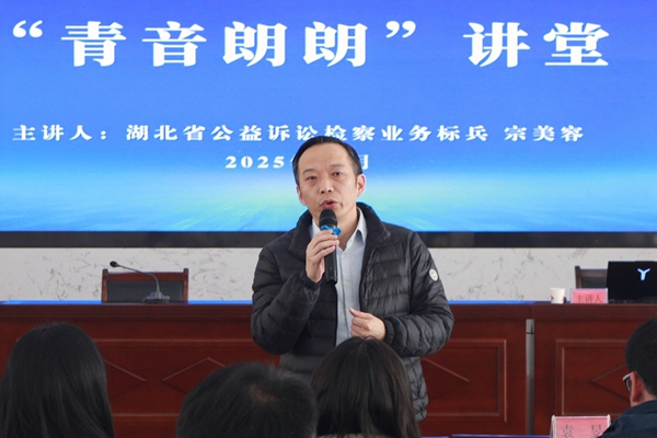 本次活动特邀东湖高新区检察院第二检察部负责人、首届湖北省公益诉讼检察业务标兵宗美容同志担任主讲。院党组成员、代检察长徐江出席活动,院党组成员、副检察长郑君致欢迎辞,院党组成员、政治部主任袁旻主持活动。武汉市公益诉讼部门青年干警代表、蔡甸区院青年干警参加活动。